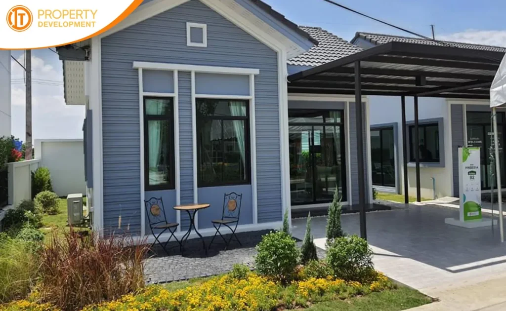 โครงการกรุฟวี่พาร์ค บ้านบึงที่นี่มีสไตล์การออกแบบบ้านในสไตล์ English Cottage อย่างตัวบ้านเดี่ยวบ้านบึง จะมีชื่อเรียกว่า Azalea เป็นลักษณะบ้านชั้นเดียวมีพื้นที่รอบบ้านทั้ง