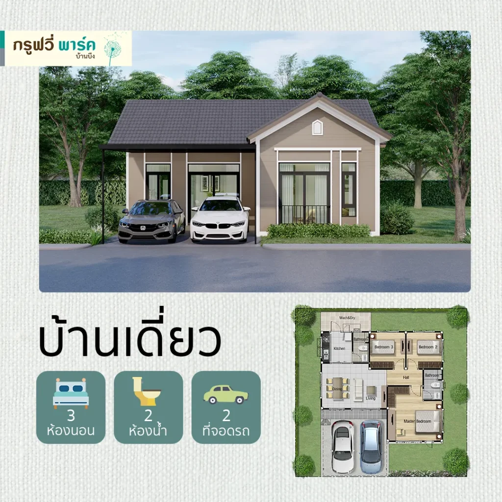 “กรูฟวี่ พาร์ค บ้านบึง” โครงการบ้านใหม่เอี่ยมจาก ITD Property ภายใต้แนวคิดการออกแบบสไตล์ “English Cottage” สุดคลาสสิกใจกลาง บ้านบึง-ชลบุรี พื้นที่ทั้งโครงการ 18 – 1 – 50.72 ไร่* ตอบโจทย์ความเรียบง่ายที่แสนอบอุ่น ผสมผสานระหว่างความเป็นธรรมชาติ และสะท้อนรสนิยมชั้นสูงที่ทันสมัยของผู้อยู่อาศัยได้เป็นอย่างดี มีครบทุกฟังก์ชันการใช้งาน ยกระดับทุกการอยู่อาศัย ด้วยจำนวนยูนิตทั้งหมดรวมกว่า 112 ยูนิต คำนึงถึงความต้องการของผู้อยู่อาศัยอย่างแท้จริง นำไปสู่การพักอาศัยแบบ LIVING IN THE GARDEN “แนวคิดเชื่อมต่อชีวิตกับธรรมชาติ” ที่เปรียบเสมือนอยู่ท่ามกลางธรรมชาติแวดล้อมด้วยขุนเขา พร้อมสวนสาธารณะในโครงการขนาดใหญ่ กว่า 0-2-32.9ไร่เลยทีเดียว