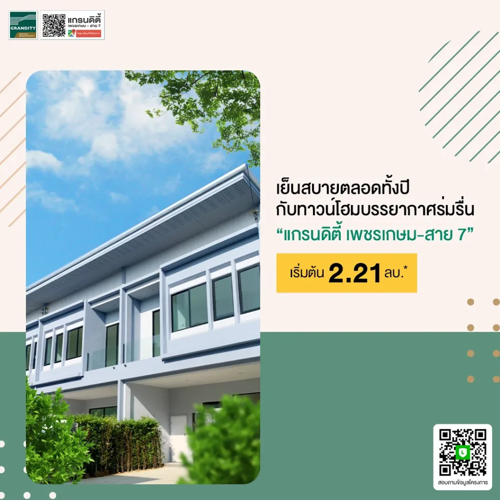เย็นสบายตลอดทั้งปี กับทาวน์โฮมบรรยากาศร่มรื่น “แกรนดิตี้ เพชรเกษม-สาย 7”