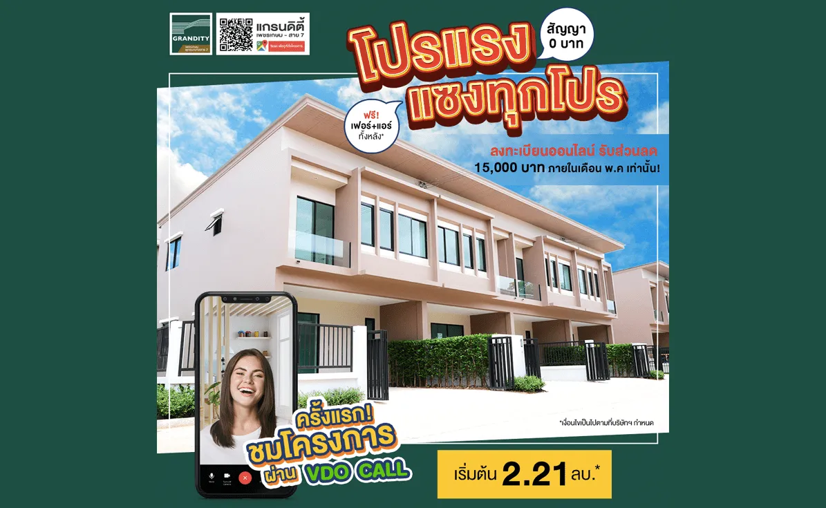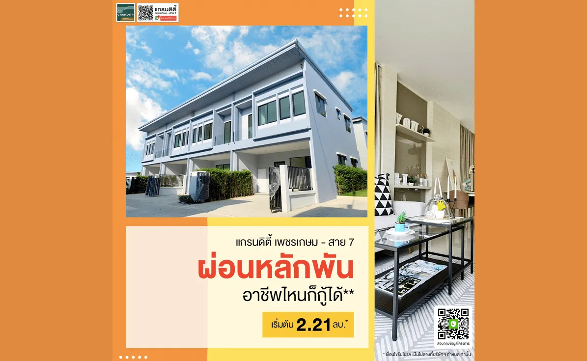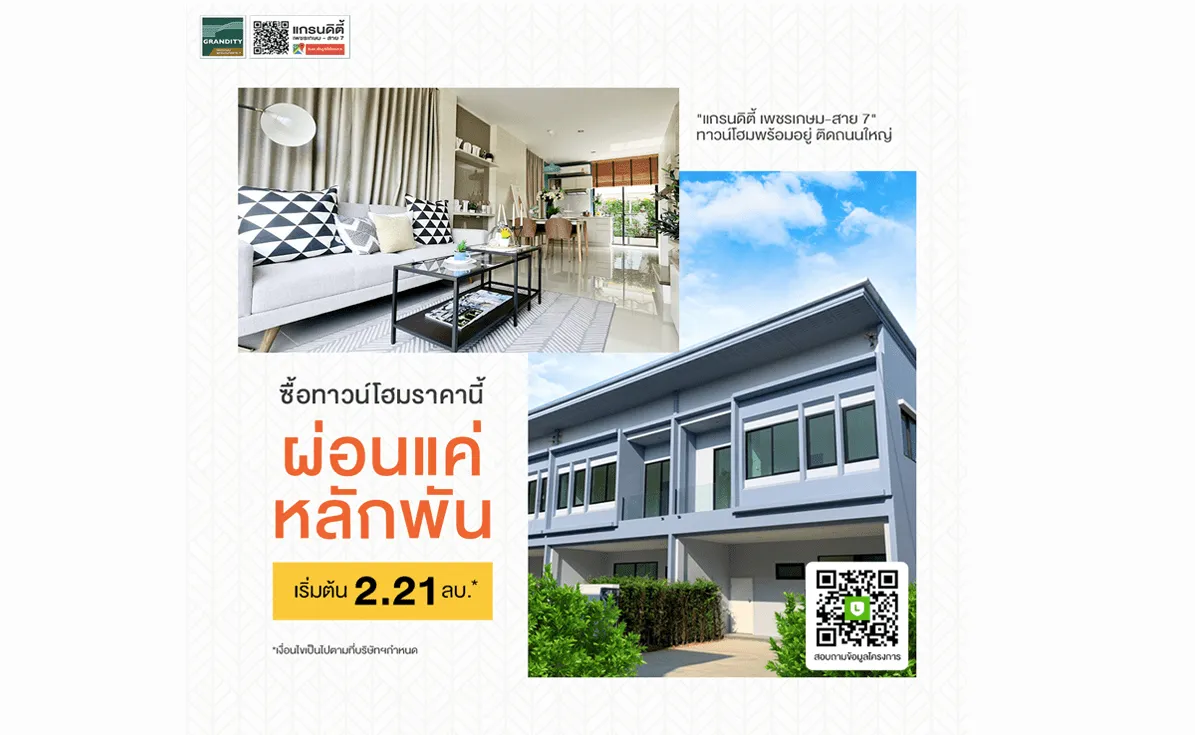 ซื้อทาวน์โฮมในราคาผ่อนแค่เพียงหลักพัน! “แกรนดิตี้ เพชรเกษม-สาย 7” ทาวน์โฮมพร้อมอยู่ ติดถนนใหญ่